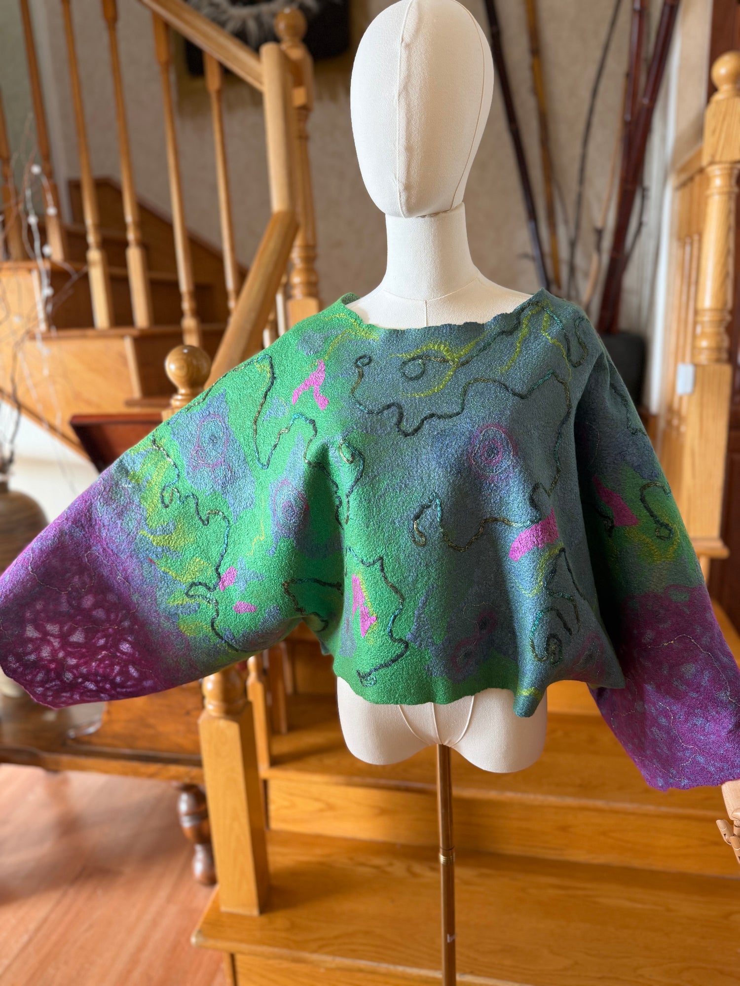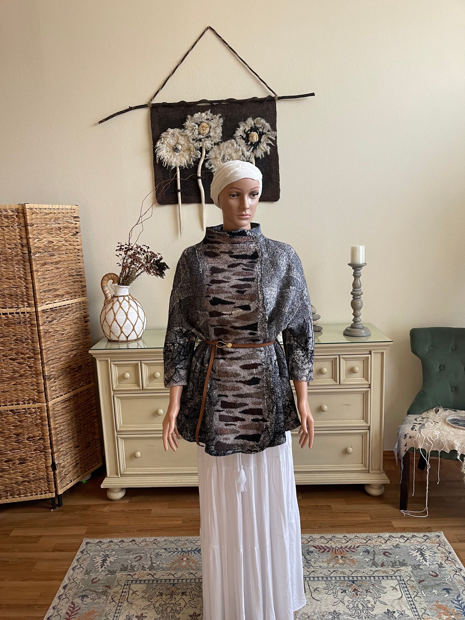 Wet felting is a magical transformation, where loose wool and other fibers, with a little help from warm soapy water and gentle agitation, morph into a dense, sturdy fabric. I create eco-friendly clothing, accessories, and home decor using only natural materials like merino wool, other wool, tensile, nettal, viscose, silk, cotton, linen and more. Each piece is made with love, celebrating nature's beauty. From delicate scarves to wall decor panels, everything is handmade with a timeless style and care for our planet. Explore my collection that combines craftsmanship, sustainability, and the charm of handmade creations.