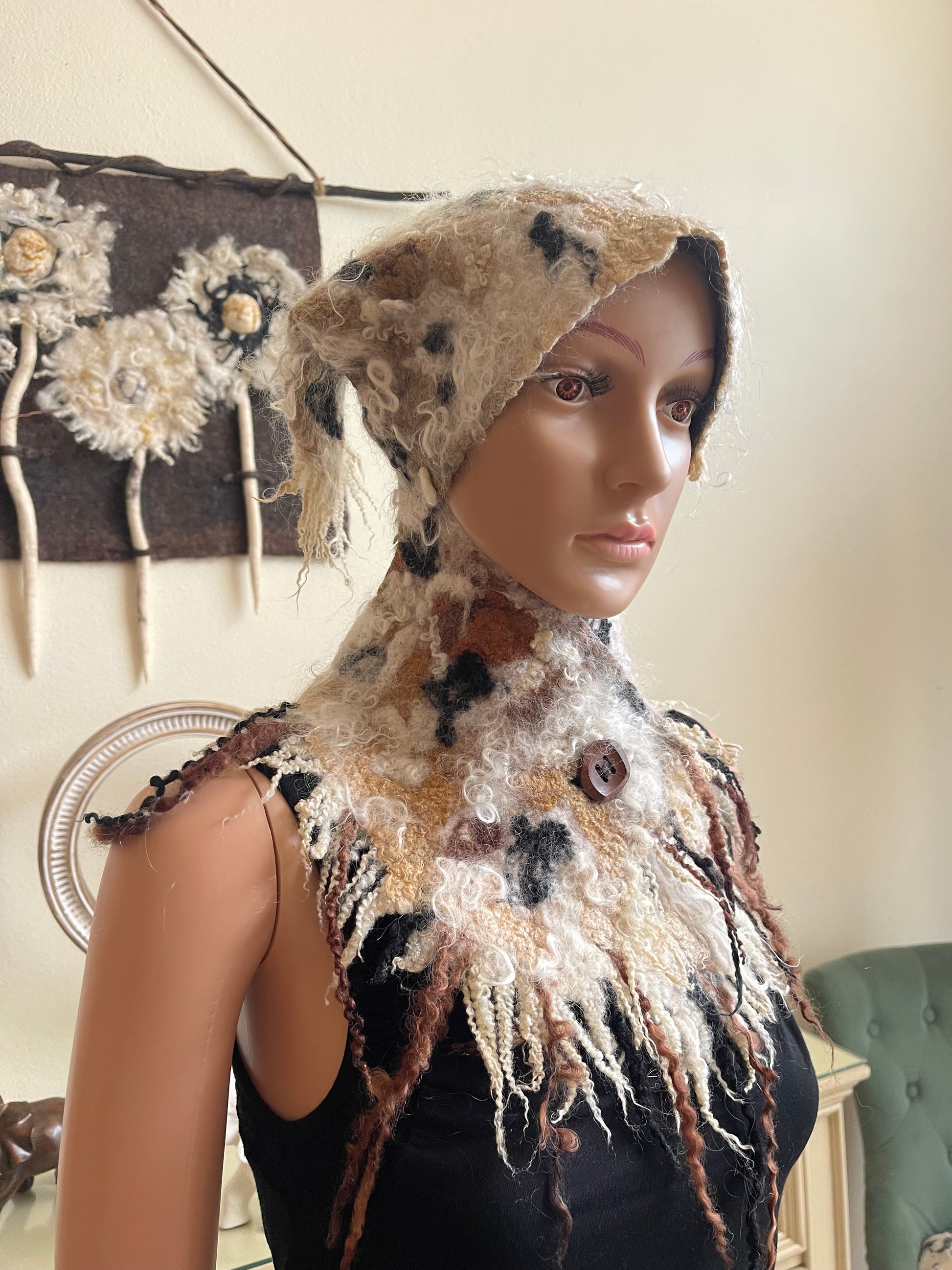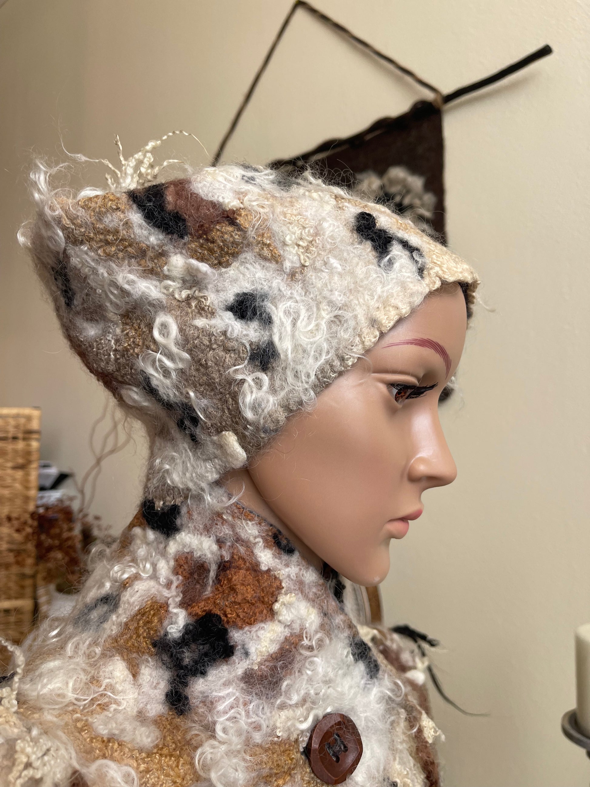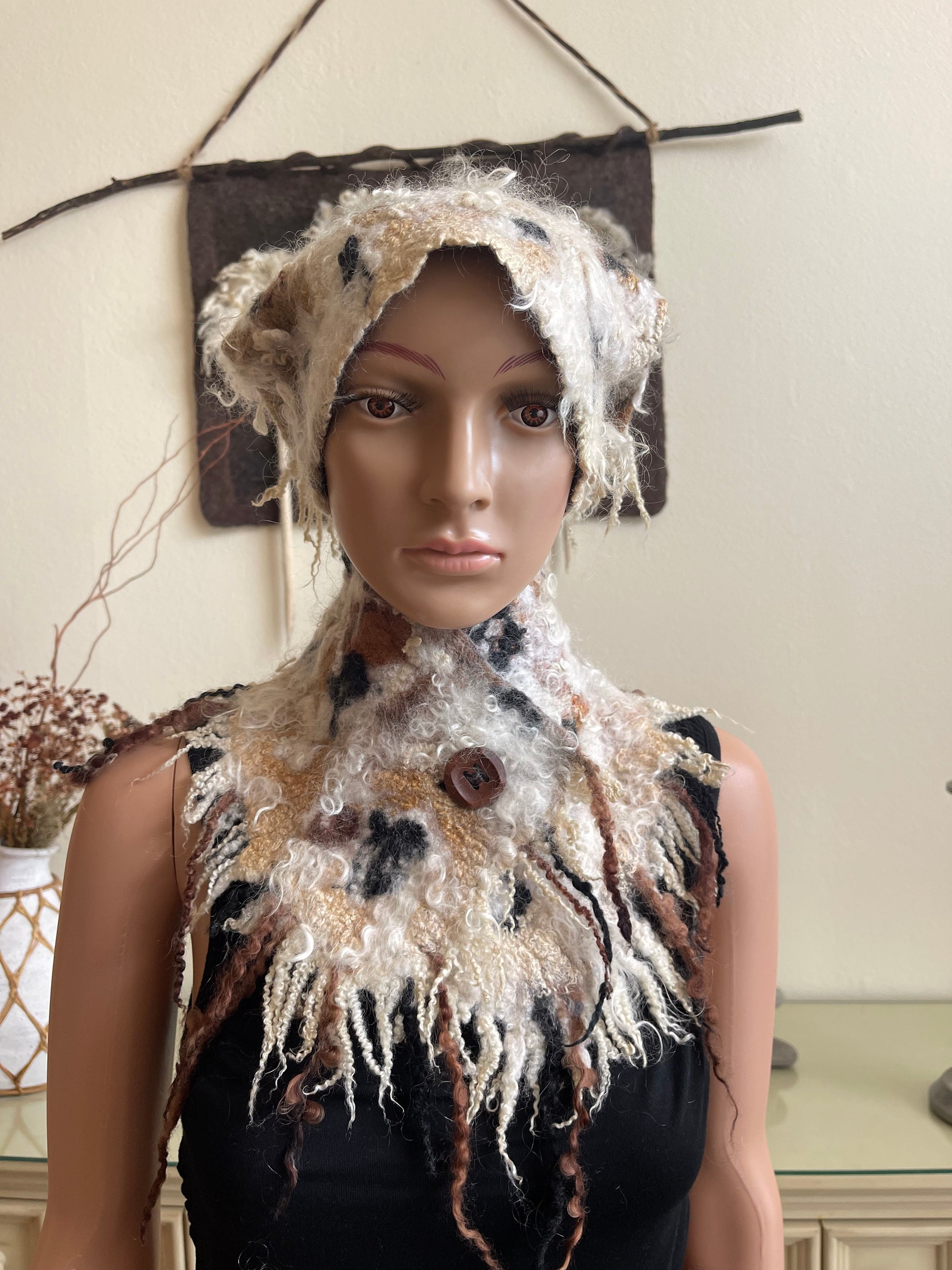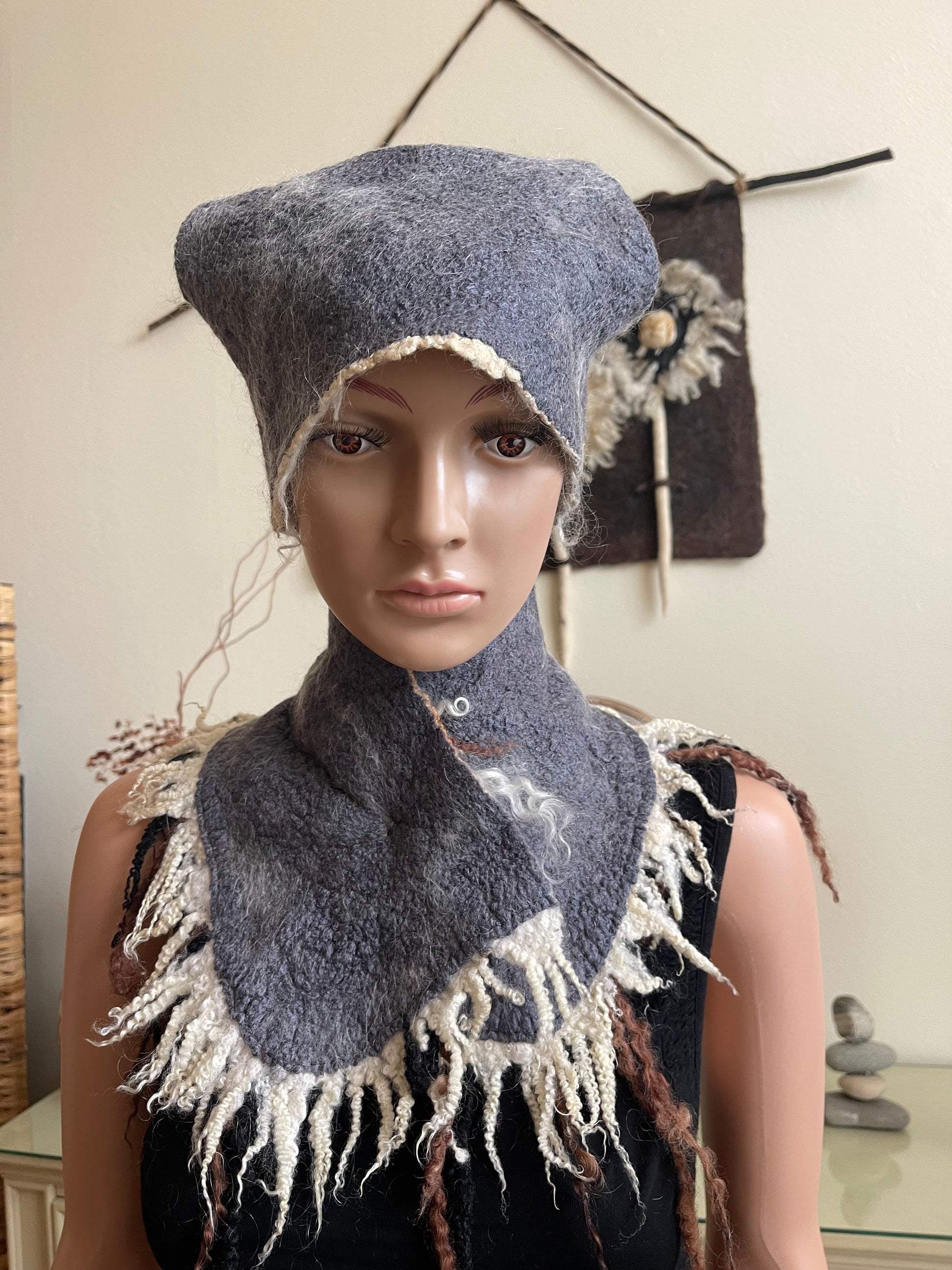 100% Natural Wool Silk Hat Scarf Set Unique Handmade Felted Beanie Wrap Ecofriendly Headwear Neckwear Bohemian Cozy Warm Artisanal Bonnet Muffler