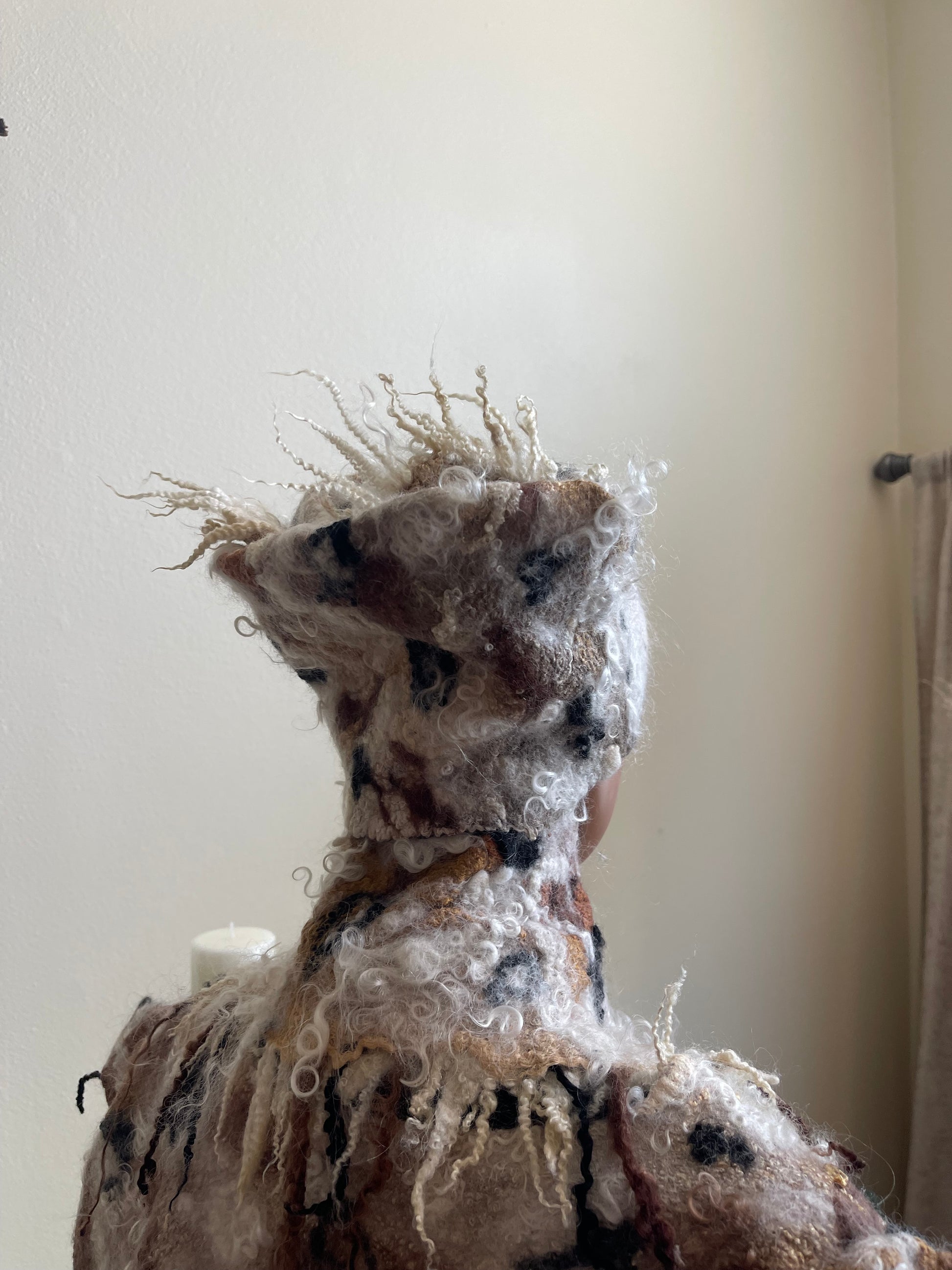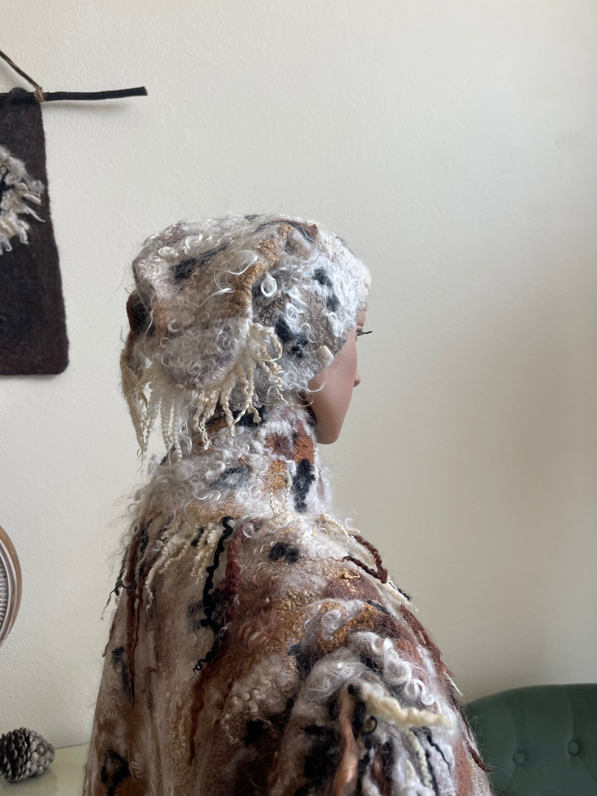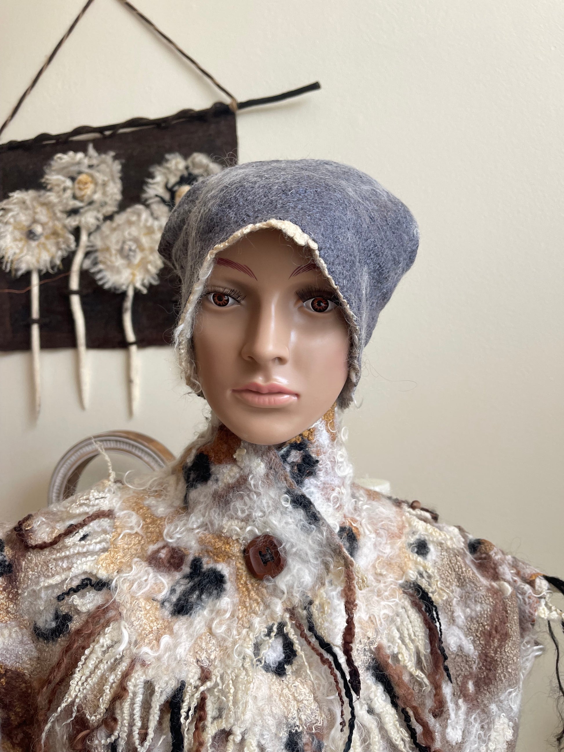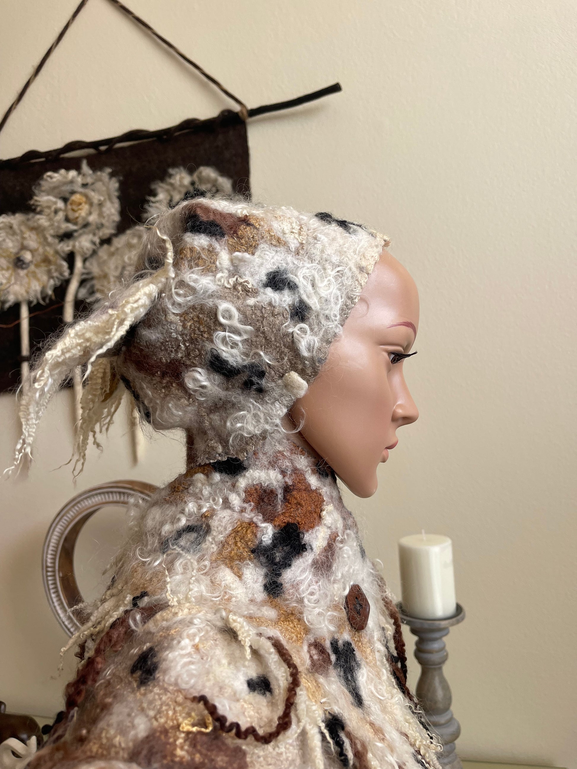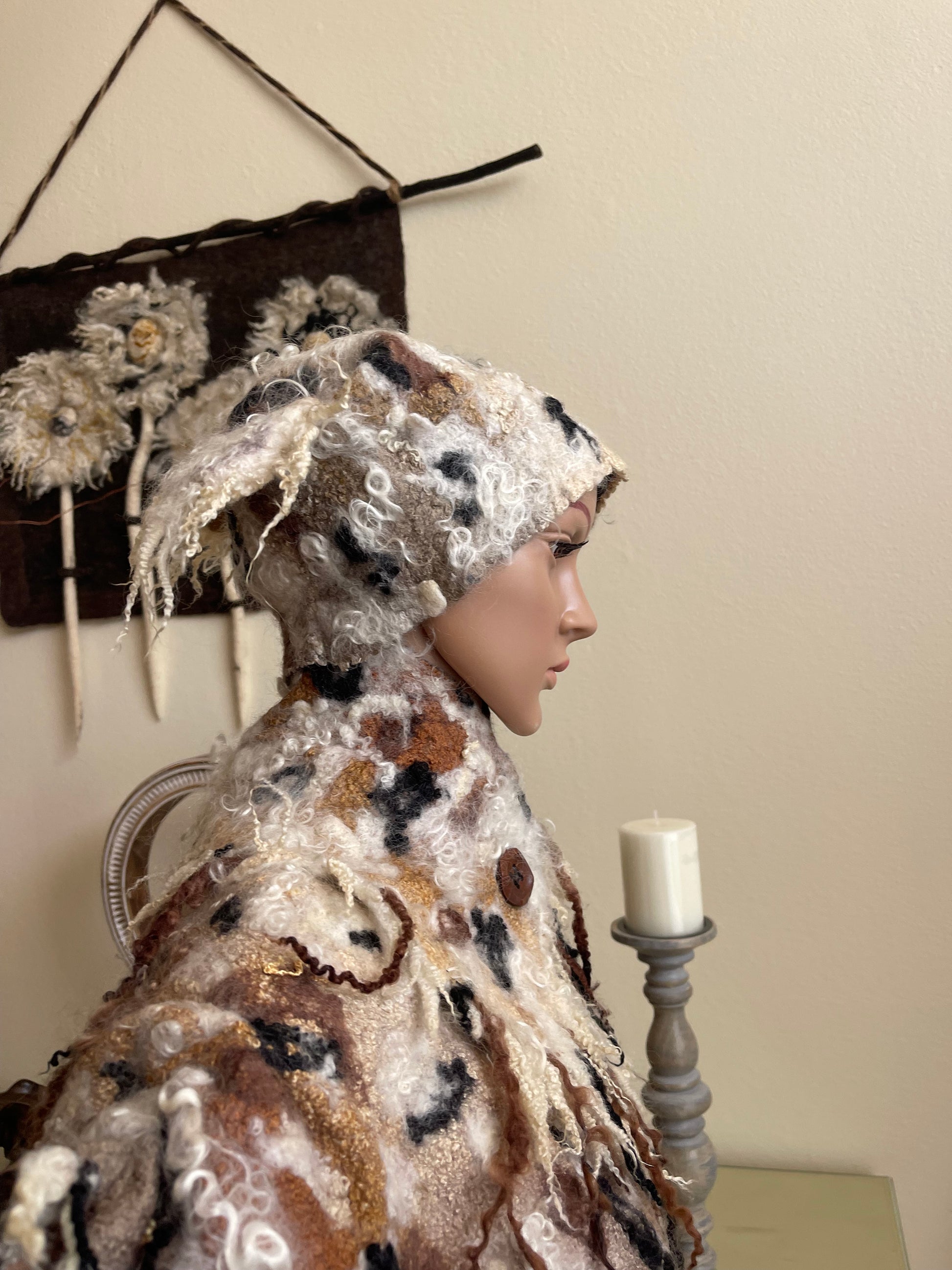 100% Natural Wool Silk Hat Scarf Set Unique Handmade Felted Beanie Wrap Ecofriendly Headwear Neckwear Bohemian Cozy Warm Artisanal Bonnet Muffler